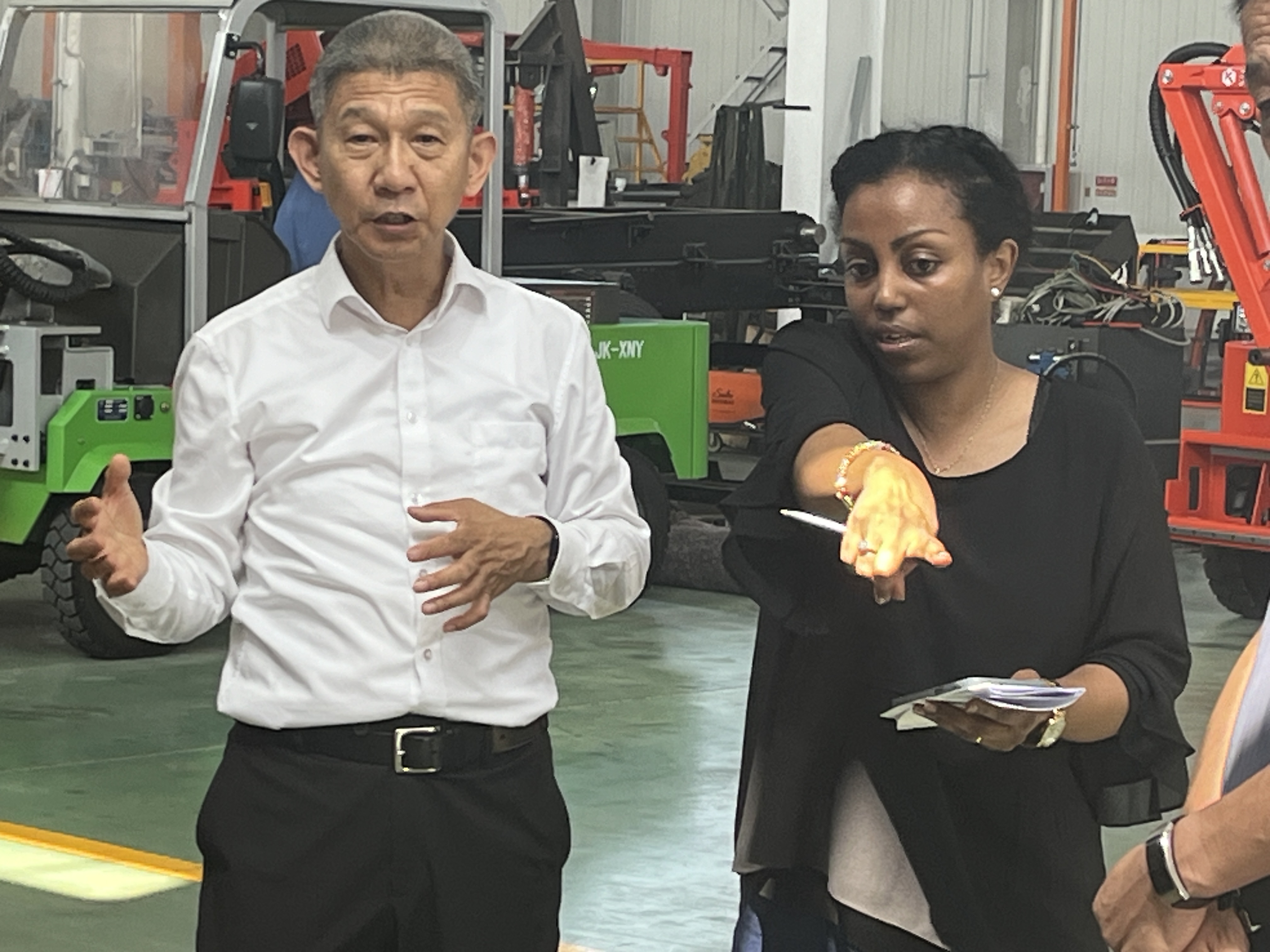 考察團(tuán)由我司劉總親自接待,在部門負(fù)責(zé)人和工程師的引領(lǐng)下,客人們參觀了我們的總裝車間,參觀了我司研發(fā)生產(chǎn)的各種機(jī)型。通過(guò)總裝車間中產(chǎn)品詳盡的介紹,埃塞俄比亞客戶對(duì)我司的技術(shù)創(chuàng)新能力及市場(chǎng)適應(yīng)性有了更為直觀的認(rèn)識(shí)。
